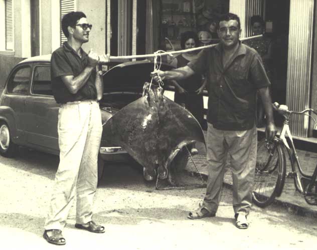 Dos buenos pescadores comañeros de pesca de mi infancia y juventud Federico Linares y Fernando Gea con un buen chucho