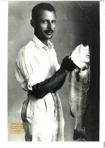 Lubina de 5,5 pescada por este otro gran pescador Ramón Genovés en la bahía de Torrevieja el 22 de sept. de 1959