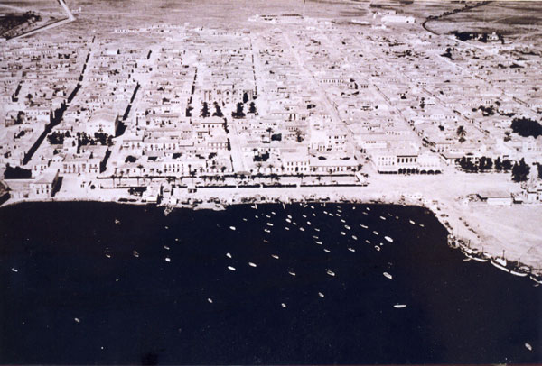 Vista aerea en 1950-Aún no existía el Club. En su lugar había una playa con pequeñas casetas de pescadores que alquilaban sus botes o jarbetas