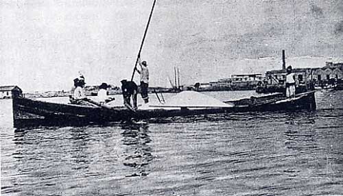 Las barcazas iban al limite de su carga dentro de la bahía. Alguna se hundió