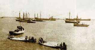 1940. Remolcando barcazas de sal hasta los cargueros