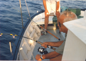 A las 4 de la madrugada de aquel día de septiembre, desatracamos de los muelles del R.C.N. de Torrevieja nuestra embarcación “Chambel”, enfilando la bocana del puerto. El parte metereológico daba variable fuerza 2-3. Era un placer navegar con la mar en calma acariciados por una suave brisa de tierra. Nos dirigimos a 7 a 8 nudos hacia el próximo cabo Cervera desde el cual pusimos rumbo 45º. Una hora mas tarde estábamos en la profundidad adecuada. Era preciso llegar de noche, pues a las 6 de la mañana apagaban las luces de la urbanización cercana y nos quedaríamos sin la enfilación necesaria para encontrar el vapor antes del amanecer. Ademas, queríamos que nuestros cebos estuviesen en el sitio, con los primeros claros del día, cuando los depredadores inician su caza.