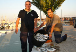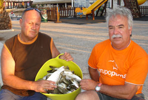 A la izquierda una buena pesquera de la embarcación AIDIL patroneada por Marcos.