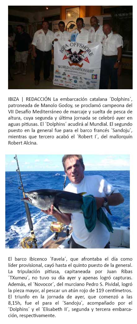Tomado del Boletin de la Confederación de Pesca Responsable (del Diario de Ibiza .es 21 de septiembre 2009)