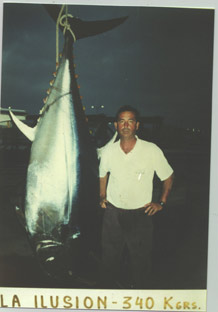 Desde hacía dos años las embarcaciones Chambel y La Ilusión, habían intentado la pesca deportiva del atún pese a la opinión generalizada de que estas no eran las aguas adecuadas y que eso era más al norte, en Castellón o Gandía. Sin embargo tuvimos siempre presente lo que habían logrado antaño barcos como el “Faraón” o “Los Valentines”y además que en esos últimos años las traíñas capturaban de vez en cuando alguno. Unos días después de capturar el Chambel su primer atún, José en “La Ilusión” capturaba ese precioso atún y unos poco tiempo después uno descomunal de 340 Kilos que aún es récord en el Club. A la vista de nuestras capturas y de otras a bordo de las traíñas, otros barcos deportivos con mejor o peor suerte, empezaron a intentarlo y lo mismo lo hicieron barcos profesionales dedicados a artes menores. Ese año el total de los atunes pescados a anzuelo desembarcados en los muelles del Club y en el de la Cofradía ascendió a 38, número que aumentó extraordinariamente en el año siguiente