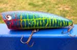 Arriba a la izquierda jig de cabeza redonda.En el centro plug o rapala y a la derecha popper para pesca en superficie La técnica llamada spinning – o pesca al lanzado en horizontal con artificiales, para ser recuperados a mas o menos profundidad- es practicada con carretes de bovina fija en la que son llamados así, de spinning, (conociéndoles en España cuando se empezaron a usar como carretes de lanzar). El spinning puede ser practicada con toda una variedad de señuelos artificiales como: cucharillas mas o menos plomadas y con formas y pesos muy variados, jigs, rapalas o plugs -que tienen una lengüeta o babero en la parte de delante para que profundicen-, poppers ( señuelos con forma de peces flotantes, con cabeza excavada para pesca en superficie que al recuperarlos hace el pop, pop que les da el nombre), o spinners : artificiales utilizados más en el río, que van dotados de una paleta giratoria. Técnica de pesca al spinning Cañas y carrete . Los carretes que utilizamos para el spinning son los habituales para la pesca al volantín de fondo aunque, dado el continuo trabajo a que son sometidos, interesa que sean muy ligeros y resistentes, (lo mismo que la caña). Es preciso que tengan un alto poder de recuperación de 5/1 a 6/1, con 4 rodamientos al menos. Preferimos, pues, por su poco peso, carretes de grafito o aluminio, ya que puede ser muy cansado estar varias horas lanzando y recogiendo un señuelo. Cuantos más rodamientos a bolas o cojinetes contenga en su engranaje, más suave y rápida será la recuperación del sedal. Yo utilizo el carrete Shimano 9000 y una Italcanna, Phenix de 2,5 m. empleando mi amigo Jeromo, un experto que me inició en estos lances, un equipo mas moderno, una caña Tecnofish de 3,4 metros y un precioso carrete el Ultegra XT 10.000. En cualquier caso la caña tendrá una acción entre 50 y 150 gr Terminales . Los sedales que se emplean para la camada, en esta clase de pesca, deben ser muy resistentes, ya que deben ser finos para obtener mayor distancia en los lanzamientos y también para no ser vistos por nuestras presas, dada la poca profundidad a la que se pesca. Nosotros empleamos Invisiline de Seaguar, o la línea invisible de Berkley de 0.33 de fluorocarbón con una resistencia de 8,3 kg. Para una caña de 2,5 a 3 metros utilizamos una longitud de camada de una braza aproximadamente para facilitar el lance y la subida a bordo de la pieza con la caña a veces muy incurvada Señuelos . Hay una enorme variedad, ofreciendo las firmas, Halco, Grauvell e Hiro, entre otras, eficaces artificiales.