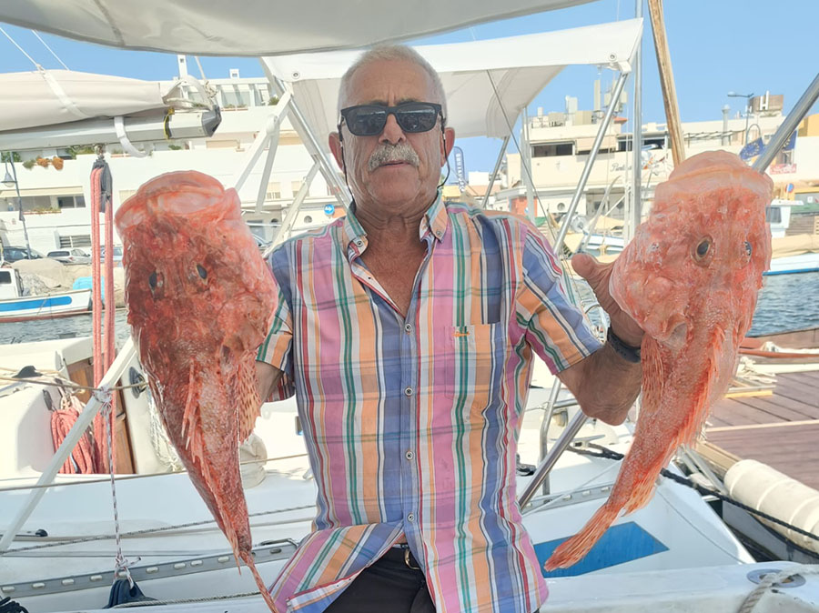 Un buen amigo , Pepe Medrano, compañero de  inolvidables jornadas de caza y pesca, me remite esta foto de una reciente pesquera,  entre otras,  de estos dos cabrachos o gallinas, de cerca de 2 kg   Fueron pescadas a bordo de su embarcación,  en fondo rocoso, frente a la costa de  Cabo de Palos,  en 250 m. de sonda. Ese día pescaron además besugos  y alguna brótola y otros pescados roqueros