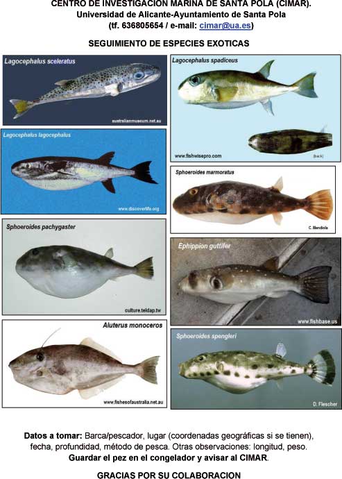 | Hace unas semanas, por medio del biólogo Santiago García Rivera, que actualmente está realizando unos trabajos de investigación, para favorecer la reproducción de la sepia en aguas torrevejenses, tuve el placer de conocer al profesor de la Universidad de Alicante y Director del Centro de Investigaciones Marinas(CIMAR) de Santa Pola, Alfonso Ramos Dicho profesor, conocido mundialmente por sus muchos trabajos científicos, entre otros, por el descubrimiento de 4 especies marinas de la familia de las Ascidias. Una de estas especies fue descubierta en aguas de Santa Pola y otras 3 en aguas antárticas. Es además, el fundador de este importante Centro (el CIMAR) poco conocido entre los pescadores recreativos, pese a su importancia con relacion a la fauna marina. Es también el creador de la Reserva Marina de Tabarca, cuyos frutos conocen ya los pescadores locales El traerlo a estas páginas es porque solicita la colaboracion del pescador recreativo, para la investigacion de peces y animales marinos exóticos, que a través del canal de Suez, del estrecho de Gibraltar, adheridos a los cascos de de embarcaciones o importados y luego arrojados vivos en nuestras aguas, (caso del cangrejo azul), estan invadiendo las aguas mediterraneas, a veces con perjuicio de la fauna local o provocando un riesgo por su potencial peligrosidad y desconocimiento del pescador recreativo. Somos muchos los pescadores deportivos que amamos la naturaleza, el mar y sus criaturas, pese a nuestra aficion a pescar. Por ello creo muy interesante colaborar con estas iniciativas que buscan sobre todo proteger el medio marino e impulsan su mejor conocimiento. Bajo, unas fotos para el recuerdo de la interesante visita que realizamos al CIMAR . El profesor Ramos nos colmó de atenciones y nos explicó detalladamente la labor investigadora y de docencia que realizan en el Centro y que podrá comprobar pulsando el enlace al final de esta nota informativa Bajo, documentos del profesor Ramos, solicitando nuestra colaboración, y unos enlaces interesantes con relacion al CIMAR y las investigaciones y trabajos que allí se realizan |