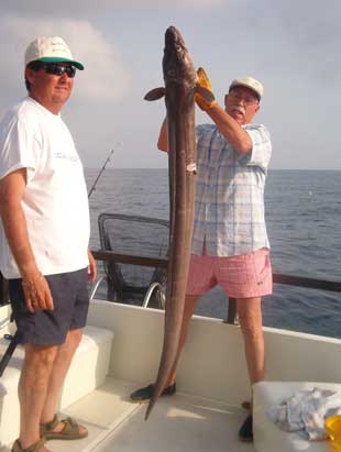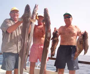 Actualmente, casi todos los barcos hundidos que visitamos, están sometidos a mucha presión pesquera por parte de la pesca recreativa ya que son ya conocidos por muchos aficionados. Con todo aún, de vez en cuando, se pueden hacer pesqueras entretenidas a base de congrios o brotolas, como esta que muestro, conseguidas por el barco "Chambel dos" pescando sobre un pecio a 10 millas de Torrevieja.