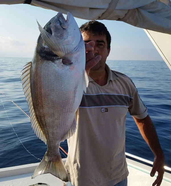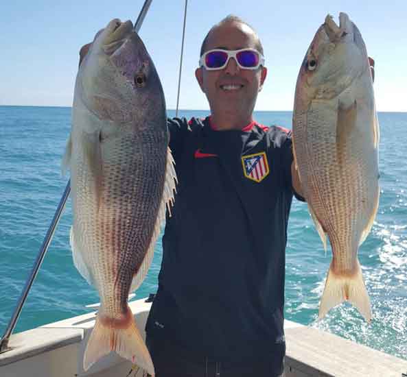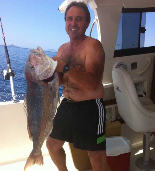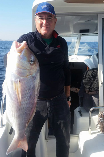 Ese día iban a bordo, el patrón Luis Llor y dos colegas, Jaime y Enrique que inauguraron el año con una pesquera capaz de hacer feliz a cualquier pescador apasionado Pescaron varios pageles alguno de 2,200 (pescados con cangrejos ermitaños), un dentón de 3.800 y un gallo pedro o pez de S.Pedro que pasaba del kilo.