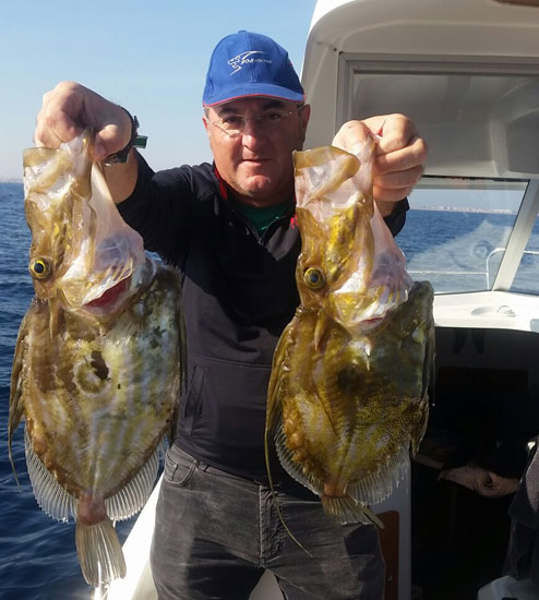 Dos peces de S.Pedro logrados según la información suministrada, pescando sobre un pecio (Pulse imagen para ampliar)