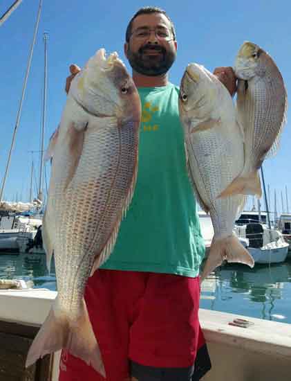 | Denton, pargos, gallina,pageles chopas etc conseguidos a bordo de estos veteranos y buenos pescadores de LOS BLANCO |