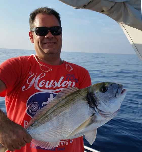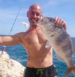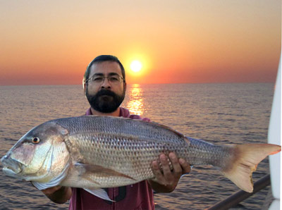 | Ver bajo, otra preciosa captura ( dorada de 2,800) de este pescador, hasta hace poco de surfcasting, y que ahora muestra una de sus mejores capturas a bordo de su embarcación recien adquirida . Le deseamos que continue su suerte y buen arte |