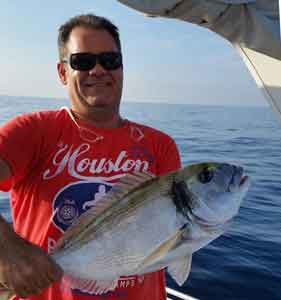 Palometón (lichia amia) a bordo de la embarcacion CUCHICUCHI, con base en el Puerto de Campoamor patroneada por Javier Valdés. Fue
