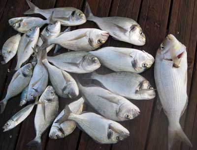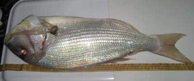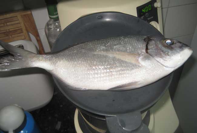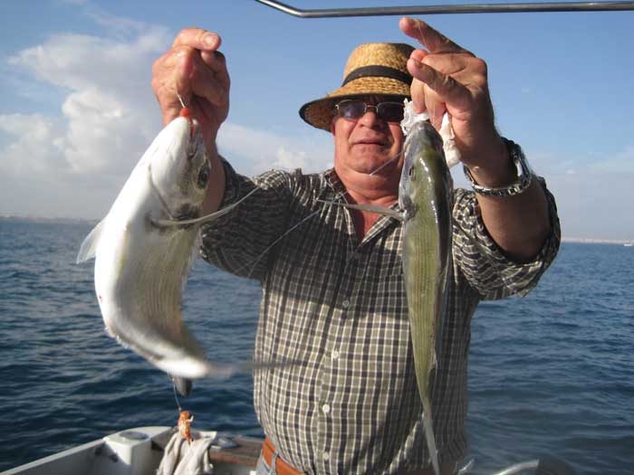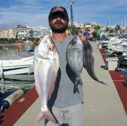 | Bajo, pagel, que segun el interesado, pesó 2,700 y unas buenas chopas . A la derecha dos gallos capturados recientemente |