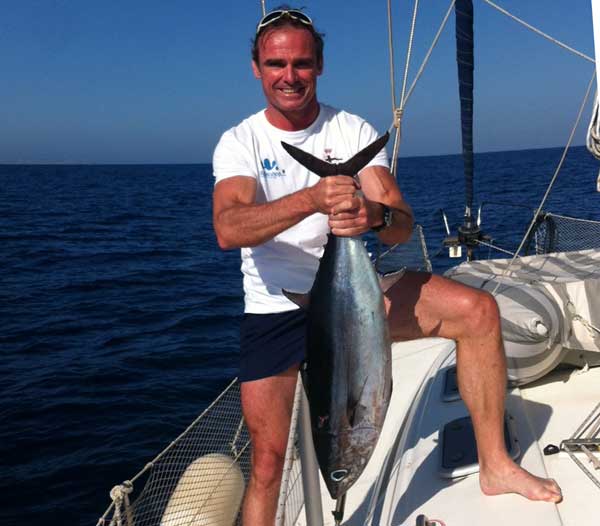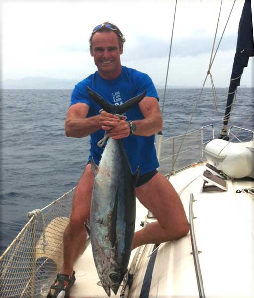 | Albacoras pescadas, recientemente al curicán a vela , a bordo del Kapi. La mayor tenía cerca 24 kilos . La otra de 7 a 8. Foto remitida por Jaime Javaloy .Para mas imformación sobre "curri a vela" pulse aquí |