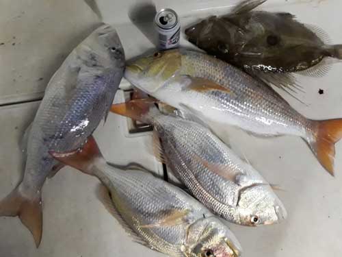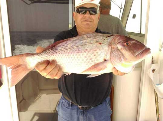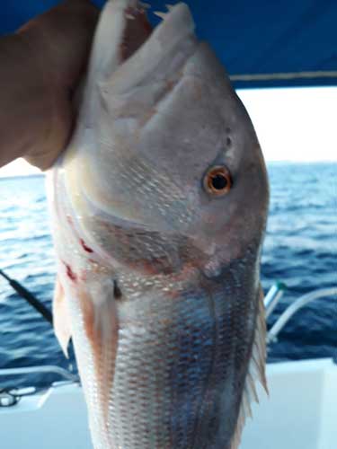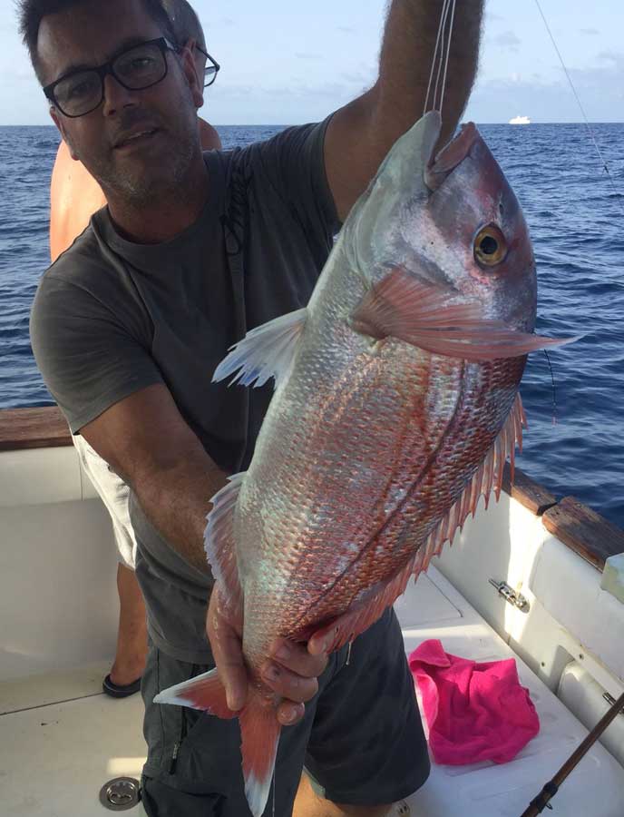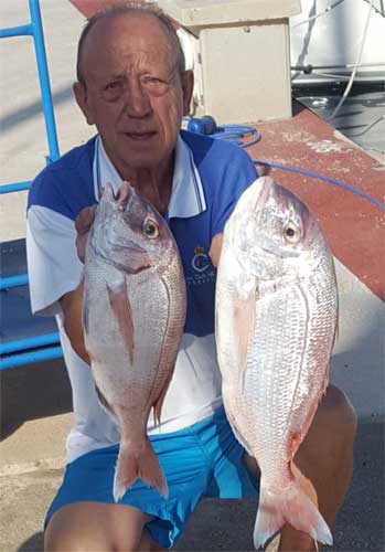 El patrón con dos buenos pargos, pescados en 98 m de sonda