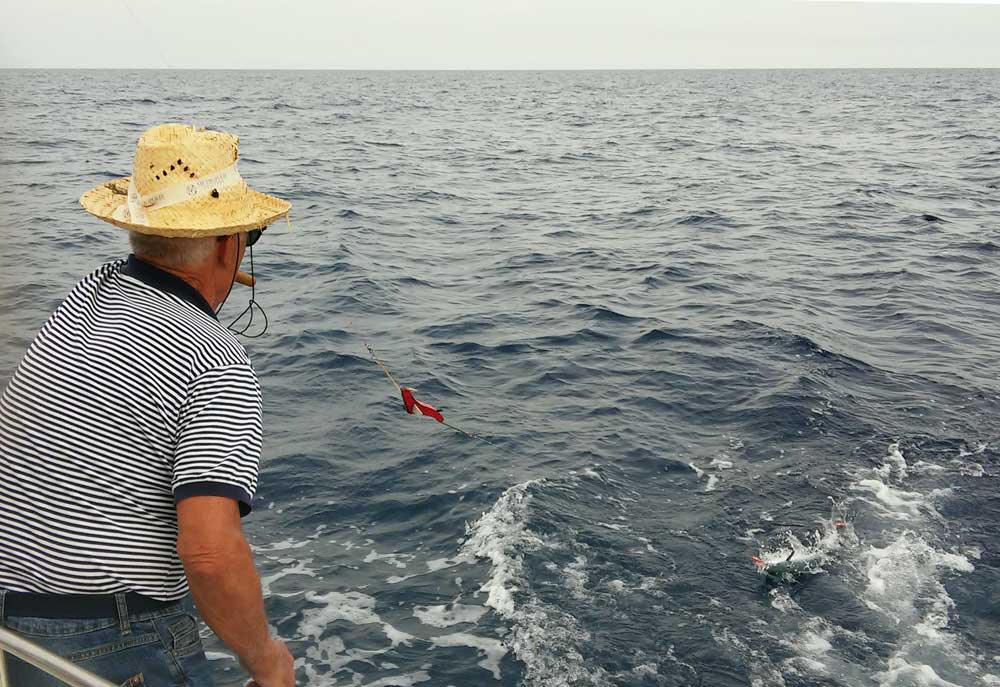 Ese día pescaba al curricán en solitario. Ya de vuelta, puso rumbo a Tabarca. En ese momento recibió una fuerte picada en la caña de estribor en el momento de estar girando el barco. Siguió girando despacio, de 20 en 20 grados con el piloto automático, hasta que por la proa tuvo la isla.