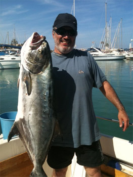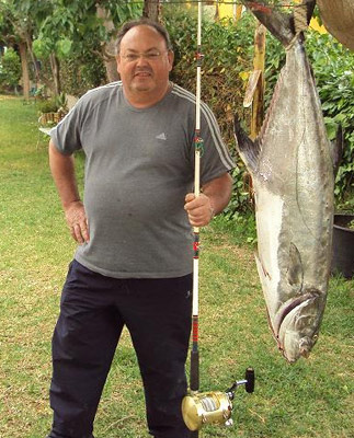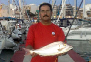 Palometón (Lichia amia) de 22 kg Captura realizada el día 30 de abril de 2011 a bordo del HURACAN, patroneado por el veterano y buen amigo Tono Escudero. La tripulación estaba compuesta además, por Jesus Martín y Antonio Moya. El palometón fue pescado con una rapala de 12 cm de la marca Yozuri en tono amarillo, a una profundidad de 22 metros y a la altura del cabo de Cabo Roig. El combate duró unos 30 minutos ya que la línea (con terminal del 0,45) no era la mas segura para ese tamaño de pescado. El buen hacer de Tono y de su tripulación permitió subir a bordo este precioso ejemplar.