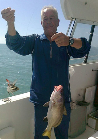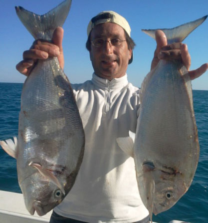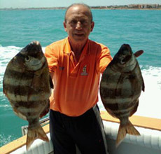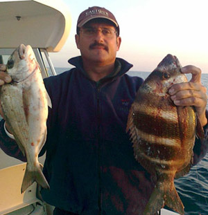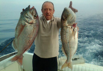 Una buena pesca de Eduardo Melgarejo. Un sargo imperial ( diplodus cervinus), de 2,2 kg y una dorada de 1,300 lograda en febrero de 2011 |