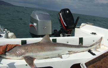 A la izda otra buena captura a bordo de su barco. Un cazón o Galeorhinus galeus