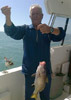 Tengo el gusto de incluir en esta nueva edición de capturas relevantes, correspondiente al año 2011, esta pesca afortunada de un viejo compañero de nuestra embarcación Chambel y gran pescador, Antonio Ruiz de Orihuela. Se trata de una corvina, ( Argyrosomus regius), hembra , de cerca de 6 kilos y 83 cm de longitud conseguida pescando en unos de 90 m.de sonda, utilizando volantín de mano, a bordo de la embarcación TERESITA DOS, patroneada por Joaquín Larrosa.