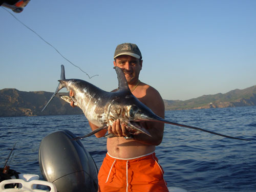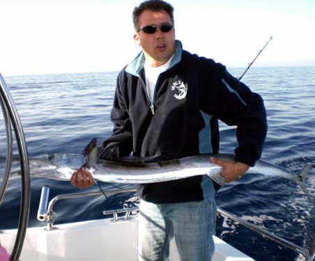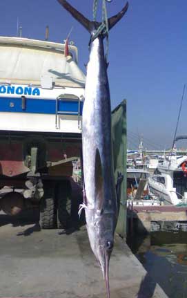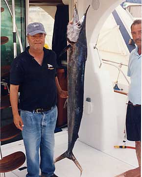 | Primera pesca de altura del presente año de la embarcación Polar.Una aguja imperial de 130 cm., capturada a 350 mts de sonda frente a Valencia, curricaneando a 8 nudos.La pescó con equipo de 50 libras utilizando de señuelo un Halco Láser Pro de 19 cm., color blanco con cabeza roja, pescando a una distancia de la popa de unos 70 mtrs. El combate duró aproximadamente 12 minutos.Fue subida a bordo, fotografiada y devuelta al mar de nuevo , "siendo para mi (en palabras de Antonio Delgado de la Junta de Pesca Responsable de la C. V.) "una de las experiencia en la pesca mas bonita de mi vida". |