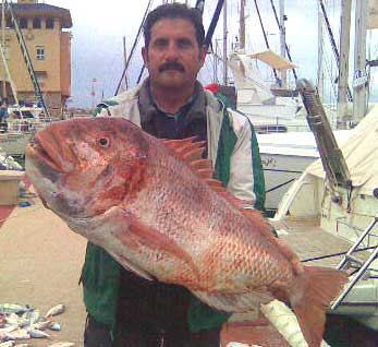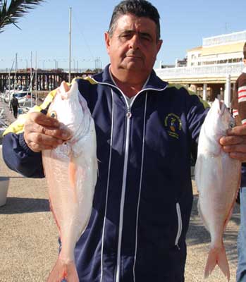 ![]() En el Concurso de pagel celebrado este año, Ignacio Vergel , del Duna, presentó entre otros estos pageles, el mayor de los cuales pesó 1,350 kg |