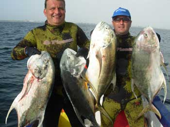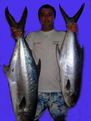 ![]() Dos palometones ( Seriola dumerilii) capturadas por Mario en aguas de C.Roig utilizando jureles vivos al curri de fondo
