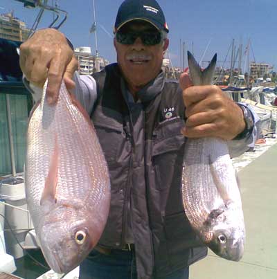 ![]() Una buena pesquera de brótolas, gallina y pargos a bordo del Casegar en marzo del 2008 |