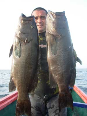 ![]() Arriba otra buena pesquera , esta vez de chernas a bordo de "El Señorito" |