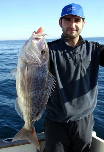 ![]() Foto remitida por F. Martínez de la embarcación "El Señorito". Es un buen pargo pescado recientemente de mas de 3 kg |