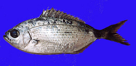 A la izda oblada o doblada. A la derecha palomina. La primera abunda sobre fondos con praderas de posidonias. Entran bien a plumas y cucharillas pequeñas.