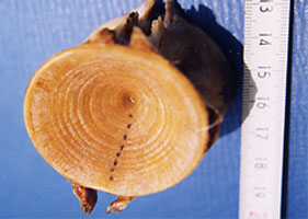 142 kilos y una edad aproximada, según se puede ver en los anillos