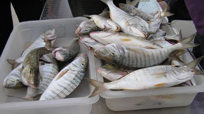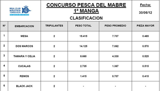 La pieza mayor la logró Fernando Marcos patrón de la embarcación DOS MARCOS: un mabre que midió 38 cm y pesó 570 gr..El mabre puede alcanzar los 50 cm, siendo aún el récord local un mabre de 705 gr.capturado a bordo de la embarcación PITI |