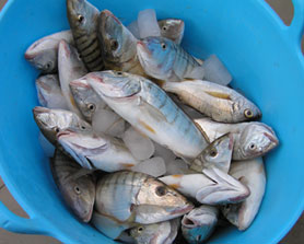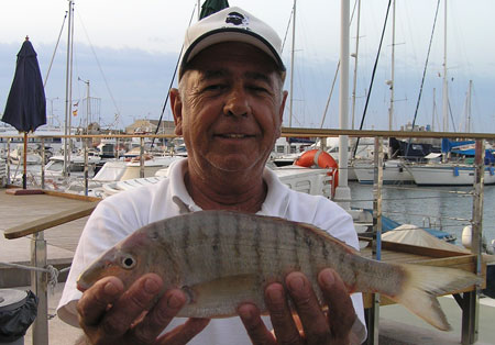 | El dia 30 de junio por la tarde-noche, se dió la salida para este Concurso del mabre que se viene celebrando en el R.C.N. de Torrevieja, de una manera ininterrumpida, desde el año 1979, siendo presidente D.Tomás Lanzarote y delegados de pesca Eduardo Moreno y Andrés Javaloy, que organizaron los primeros Concursos de pesca embarcada en Torrevieja.Pulse aquí La llegada a control estaba prevista entre las 7,30 ylas 8 de la mañana del domingo dia 1 La noche no fué buena, teniendo que pescar fondeados , dado el viento reinante, la mayor parte de los barcos, en vez de a la "ronsa " como se hace normalmente en esta modalidad de pesca. La participación fué escasa, 6 embarcaciones con 12 pescadores a bordo, aunque solo presentarían capturas a control, 5 de las mismas. Lo que me comentó mi buen amigo, Manolo el Contramaestre, es que las capturas fueron de mabres llamativamente grandes, siendo muy abundantes los de un peso entre 400 y 500 gr. Bajo, otras de las capturas presentadas |