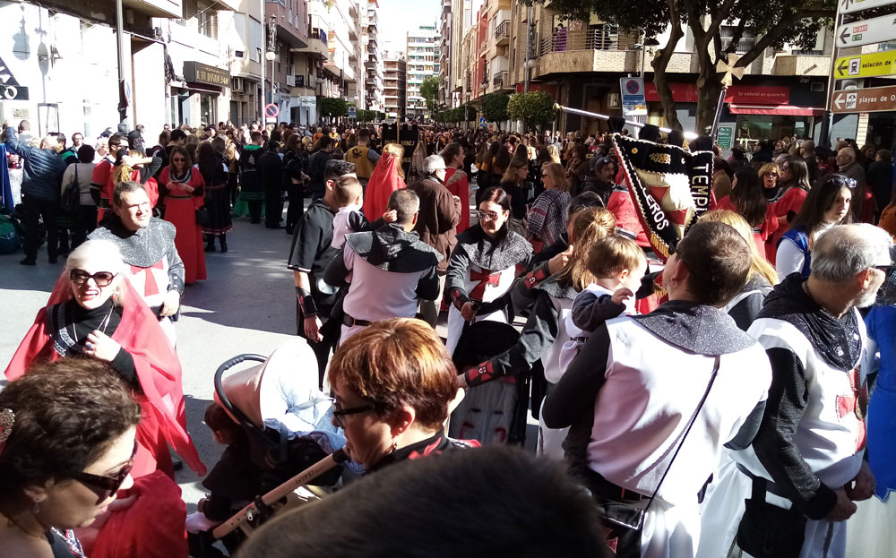 Nuestro puesto antes de empezar el desfile de Moros y Cristianos, a primera hora