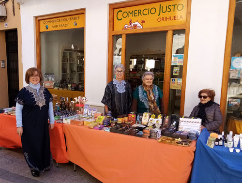 Durante esos 3 dias, nuestros voluntarios atienden un puesto en la misma puerta de nuestra tienda. Lugar que nos reserva el Excmo Ayto de Orihuela, que también subvenciona productos para degustación.La animación en este tradicional Mercado Medieval , que cumple su 22 edición es muy grande , por lo que tenemos multipes ocasiones par sensibilizar a la gente hacia este Comercio Justo.