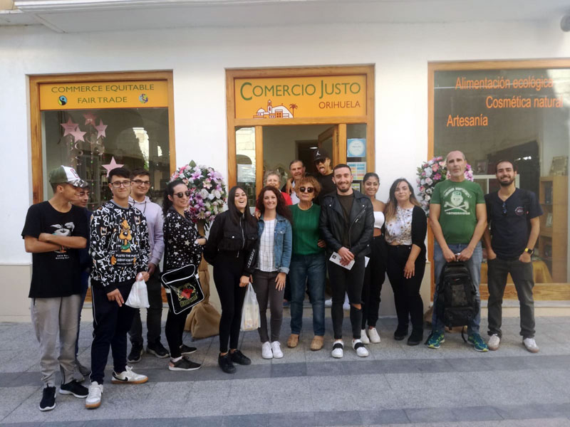 Joven Oportunidad de la Comunidad Valenciana es un programa diseñado y organizado por el Instituto Valenciano de la Juventud (IVAJ) cuyo objetivo es la realización de acciones de motivación y orientación para jóvenes entre 16 y 21 años que han abandonado los estudios . Este grupo proviniente de varias poblaciones de la Comarca de la Vega Baja, acompañados de la Voluntaria Carmen Maria Navarro y otrras formadoras, visitó nuestra tienda. La voluntaria Carmen Pator les expkicó mediante una ppt. lo que es el Comercio Justo y el bien social que se puede hacer con él, en los Paises menos desarrollados, invitándoles a participar como voluntarios
