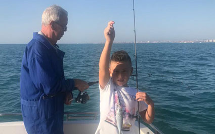 Arriba , abuelo y nieto a bordo del Chiqui 3, patroneado por J.Ramon Rodriguez. 3 generaciones de buenos pescadores |