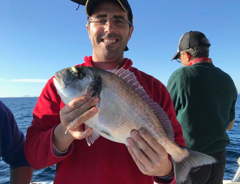 Una buena pesquera de doradas del terreno, logradas por Pepe Medrano y su hijo e invitados. Dos buenos pescadores y amigos