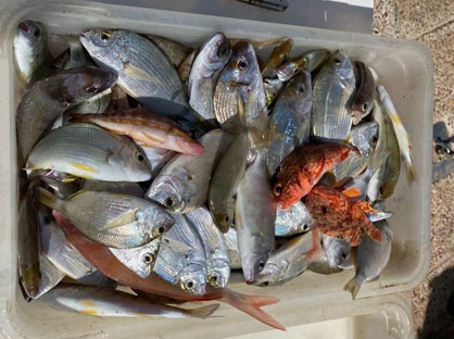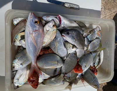 Raspallones, vidriadas pagel y pescados roqueros y alguna dorada |