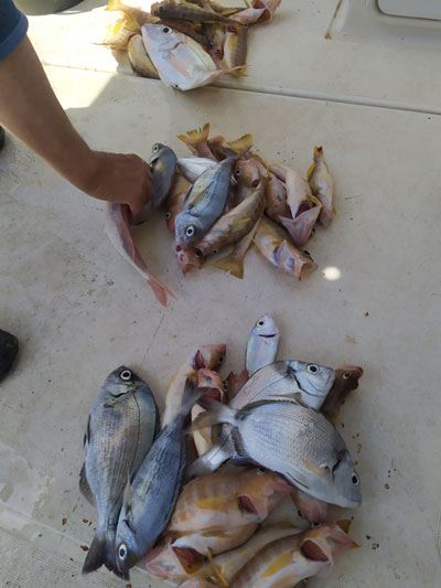 Mes de abril .Dia 30 .Una mañana entretenida a bordo del PATATY con Cesar, David y Antonio Ruiz pescando en 57 m de sonda , Serranos, chopas pagel, vidriadas Pulse imágenes para ampliar