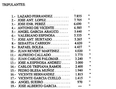 | Rafael Mesa, Salvador Vidal y Guzmán Aniorte, pescadores del equipo del RCNT, se proclamaron vencedores del Campeonato Provincial Individual de Pesca Fondeada en su calidad de patrones . Los tres primeros clasificados como tripulantes fueron: Lázaro Ferrandez, Jose A. López y Jose E.Pérez |