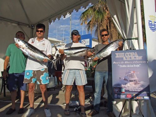 En el pesaje que se efectuaba junto al Paseo Marítimo con una abundante afluencia de aficionados y turistas, se proclamaba subcampeón al equipo mallorquín ‘Yellowfin' de Miquel Ribas, líder tras la primera jornada, con un cómputo global de 28.700 gr.