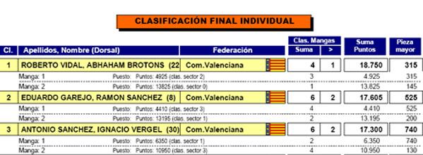 | Puntuación de los 3 primeros clasificados , tomada de la FEP y C | |