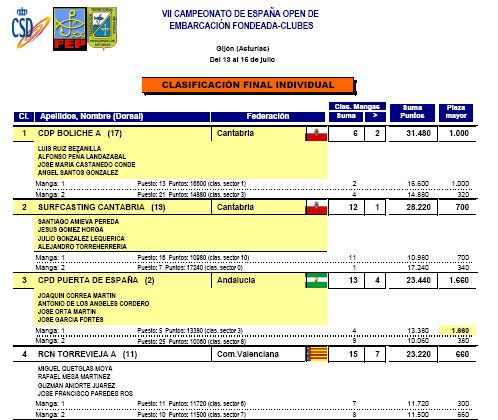 Un total de 26 equipos , tomaron parte, a partir de del viernes dia 13, hasta el dia 15 de junio en el VII campeonato de España Open de pesca desde embarcación fondeada-clubes que, en su categoría absoluta, que se celbró en la localidad asturiana de Gijón.