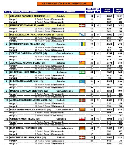 A continuación las clasificaciones por equipos e individual (14 primeros clasificados )