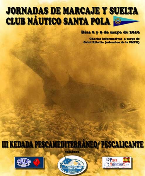 El Club Náutico de Santa Pola en colaboración con los foros Pescamediterráneo.com y Pescalicante.com, y la Federación Mediterránea para una Pesca Responsable, organizan el próximo fin de semana (8 y 9 de mayo) la I Jornada de Marcaje y Suelta en aguas de Santa Pola (Alicante), jornadas que pretenden dar un paso mas, en la cultura de la pesca deportiva. Estas jornadas están dedicadas especialmente a informar al pescador de la existencia de esta modalidad de pesca, enseñar la forma correcta de realizar un "captura y suelta" efectivo, sea cual sea la modalidad que se practique. Simplemente se trata de mostrar que es otra opción en el mundo de la pesca, que la puede practicar cualquiera y que sorprenderá gratamente a mas de un pescador el ver a esos peces recién sacados del agua y volviendo a su medio. |