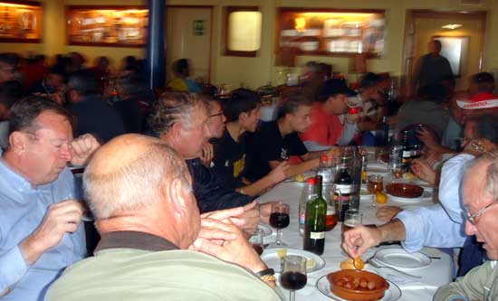 Una estupenda comida a base de una sabrosa "fideuá" y un chuletón de Ávila repusieron las gastadas energías de los pescadores